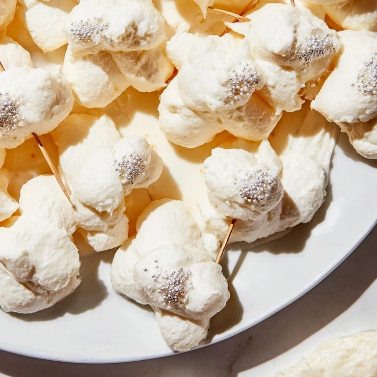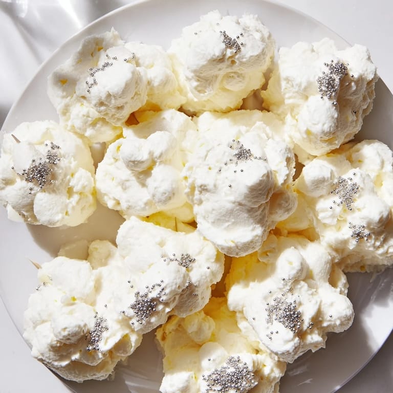 - Fluffige Käsewolken: 200 g Frischkäse, 100 g frischer Ricotta, 2 EL Crème fraîche, ¼ TL Salz, essbare Silber- oder Perlglitzer (optional zum Garnieren)