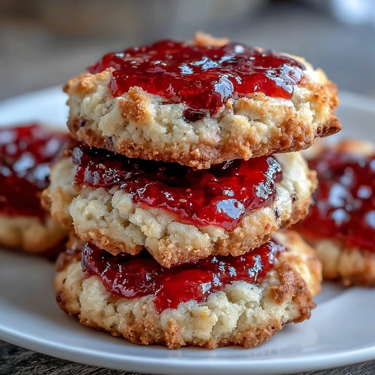 Anheften My neighbor knocked on my kitchen door one afternoon with a basket of strawberries so perfectly ripe they practically glowed. She'd grown them herself and insisted I do something special with them. That evening, while the jam bubbled on my stove filling the kitchen with the most intoxicating sweetness, I remembered my grandmother's thumbprint cookies from decades ago. The two ideas collided beautifully, and these strawberry jam thumbprint cookies were born. Now they're what I reach for whenever I need something that feels both homemade and impressive.