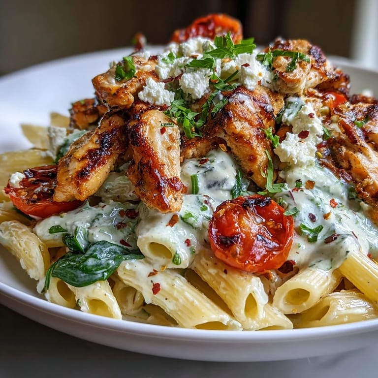 Anheften Ein Freund brachte mir eines Abends einen Beutel mit gerösteten Knoblauchzehen mit, die er von einem lokalen Markt mitgenommen hatte, und fragte, ob ich damit etwas anfangen könnte. Ich öffnete ihn, atmete diesen süßlichen, buttrigen Duft ein und wusste sofort, dass Pasta die Antwort war. Diese Kombination aus weichem geröstetem Knoblauch, Feta und zartem Hühnchen entstand an jenem Abend und ist seitdem nicht mehr aus meiner Küche wegzudenken. Es ist eines dieser Gerichte, das einfach wirkt, aber so viel mehr bietet als nur Geschmack.
