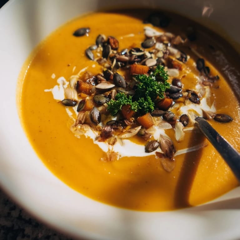 Kürbis ist reich an Vitaminen und Ballaststoffen, die diese Suppe zu einer nahrhaften Mahlzeit machen.