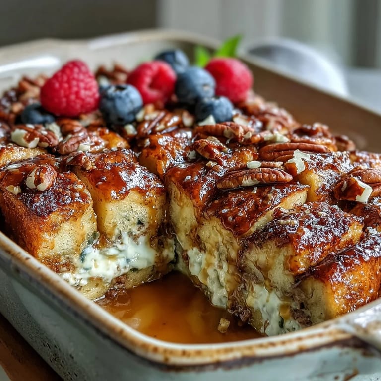 Anheften Start your morning with a touch of decadence. This Caramel Cream Cheese French Toast Casserole is a luxurious overnight brunch dish that combines the buttery goodness of brioche with a sweet cream cheese filling and a rich, golden caramel drizzle. It is designed to be prepared the night before, allowing the flavors to meld and the bread to soak up every bit of the spiced custard for a perfectly soft, melt-in-your-mouth interior.