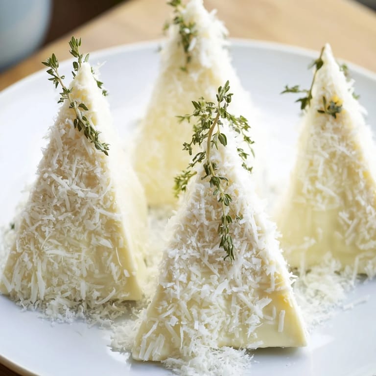 Anheften Ich habe diesen Käse-Appetizer an einem verschneiten Nachmittag erfunden, als ich verzweifelt etwas Elegantes mit nur zwei Käsesorten zusammenstellen musste. Die Idee kam mir beim Schneiden der Brie-Keile – plötzlich sah ich nicht nur Käse, sondern schneebedeckte Berggipfel auf meinem Schneidebrett. Seit diesem Moment macht mich dieses kleine Gericht jedes Mal lächeln, weil es so simpel und doch so beeindruckend wirkt.