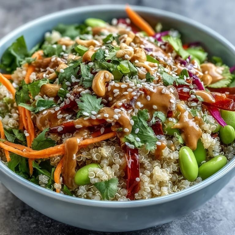 Anheften An afternoon spent browsing through a farmer's market in summer heat led me to this bowl. The vendor had just pulled fresh cilantro from the ground, and its brightness made me think about what would taste just as alive. That evening, standing in my kitchen with coconut milk in one hand and quinoa in the other, something clicked—what if I built a whole meal around warmth and freshness at once?