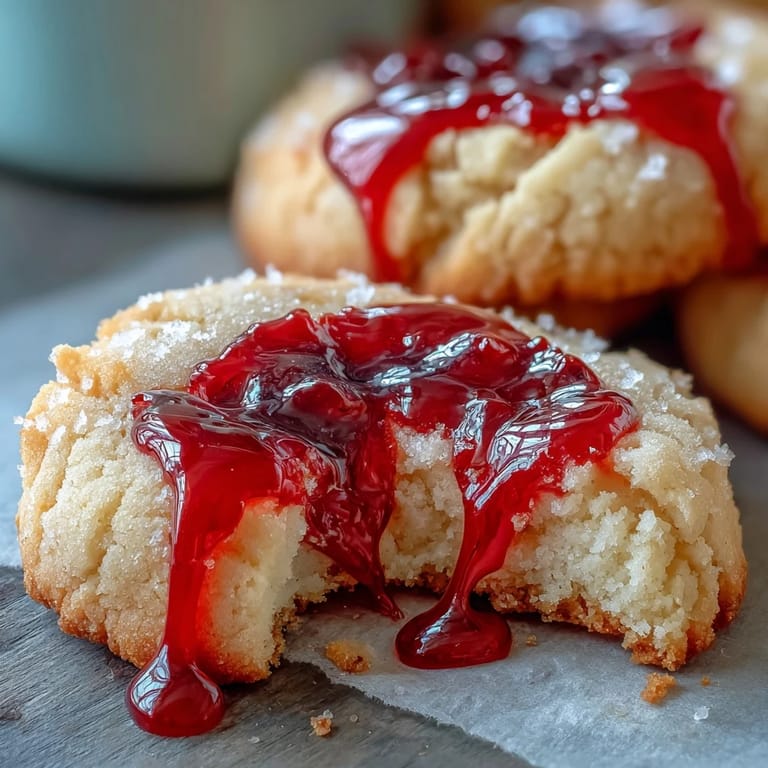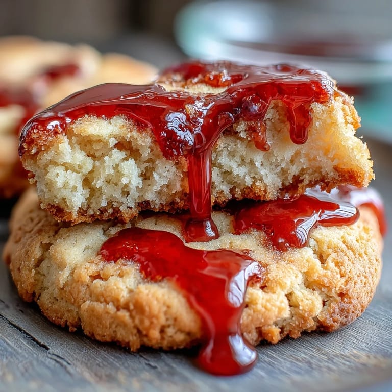 Anheften My neighbor showed up at my door one October afternoon with a plate of these vampire bite cookies, and I instantly understood why she'd been cryptic about her Halloween party plans. The moment I bit into one, the red icing oozed out like something theatrical and delicious—nothing like the stiff, overly sweet cookies I'd attempted years before. That's when I realized the magic wasn't in complexity; it was in the soft buttery base and that glossy, slightly sticky icing that actually behaved like blood. Now every Halloween, I make a batch big enough to share the same gleeful surprise.