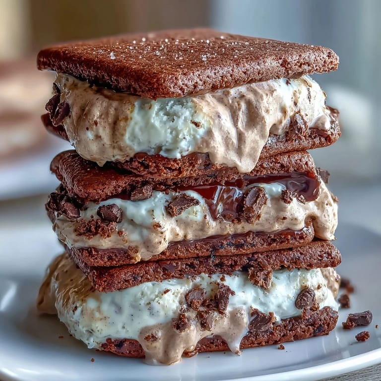 These ice cream sandwiches are stunning when served on a chilled platter for parties or wrapped individually in parchment paper for a portable treat. Drizzle with chocolate or caramel sauce just before serving for an extra touch of elegance. Pair them with a freshly brewed espresso or iced coffee to complete the café experience. For a fun dessert bar, set out assembled sandwiches alongside bowls of toppings like crushed cookies, sprinkles, chopped nuts, and chocolate chips so guests can customize their own. They're perfect for birthday celebrations, summer barbecues, or as a special after-dinner treat. Store sandwiches in an airtight container in the freezer for up to 2 weeks, layering parchment paper between them to prevent sticking.
