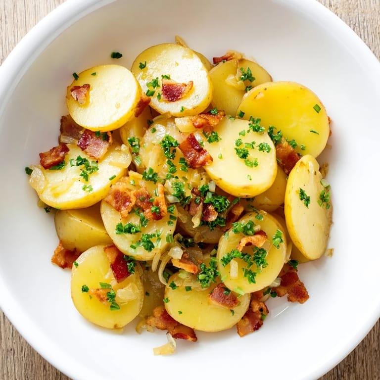 Ich habe diesen Kartoffelsalat zum ersten Mal bei einem Familienessen serviert, und alle waren begeistert von der Kombination aus Süße, Säure und dem rauchigen Speckgeschmack.